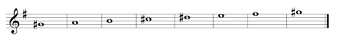 La diatonía del pasaje se limita a las alteraciones Fa y Do sostenido, que junto al centro tonal de Mi, (claramente establecido por la pedal en la mano izquierda) dan lugar a un modo dórico o de Re.